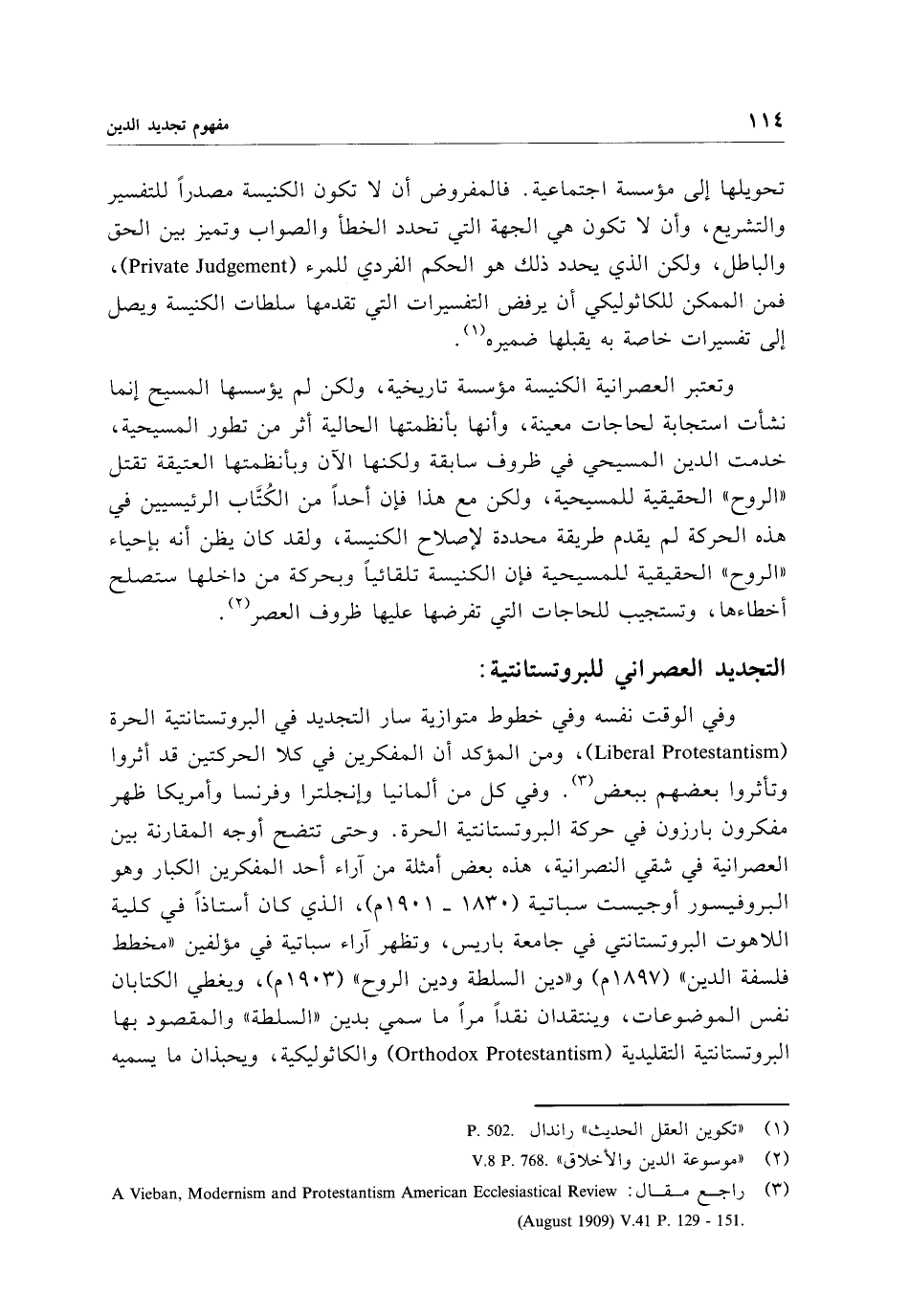 (¬3) راجع مقال: A Vieban, Modernism and protestantism American Ecclesiastical Review (August 1909) V.41 P.129 - 151.