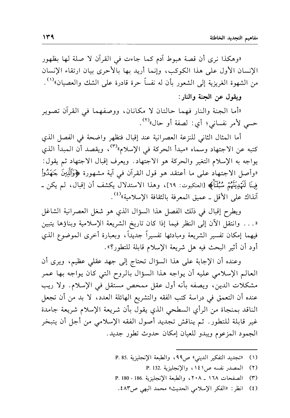 (¬1) "تجديد التفكير الديني" ص 99، والطبعة الإنجليزية. P.85