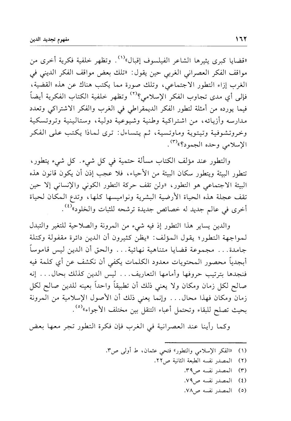 (¬1) "الفكر الإسلامي والتطور" فتحي عثمان، ط أولى ص 3.