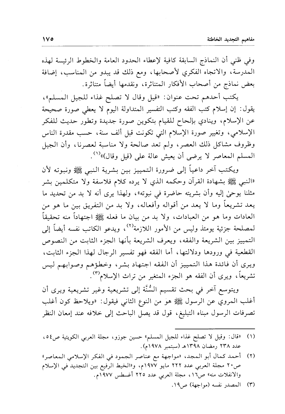 (¬2) أحمد كمال أبو المجد، "مواجهة مع عناصر الجمود في الفكر الإسلامي المعاصر" ص 20 مجلة العربي عدد 222 مايو 1977 م، و"الخيط الرفيع بين التجديد في الإسلام والانفلات منه" ص 16، مجلة العربي عدد 225 أغسطس 1977 م.