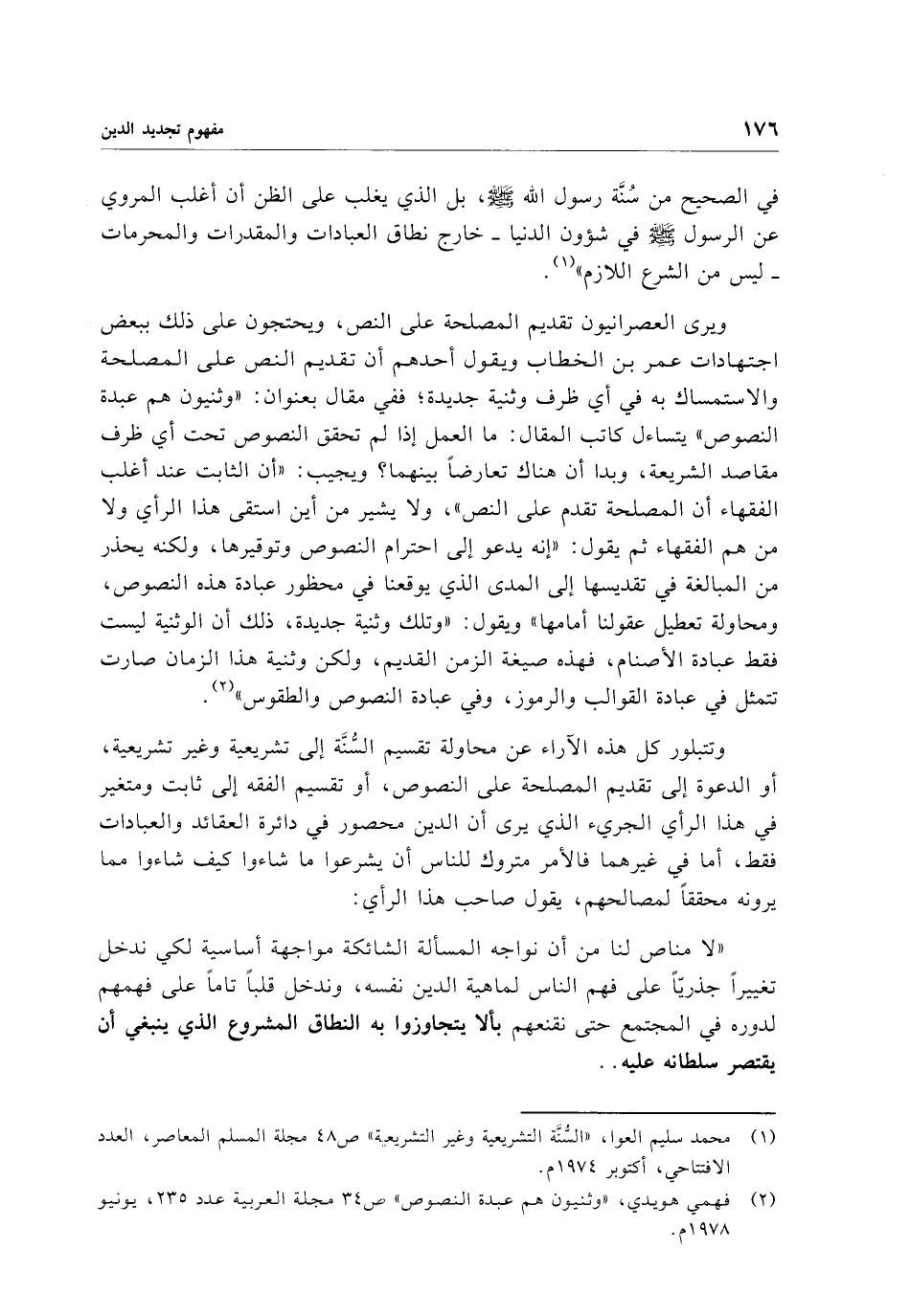 (¬2) فهمي هويدي، "وثنيون هم عبدة النصوص" ص 34 مجلة العربية عدد 235، يونيو 1978 م.