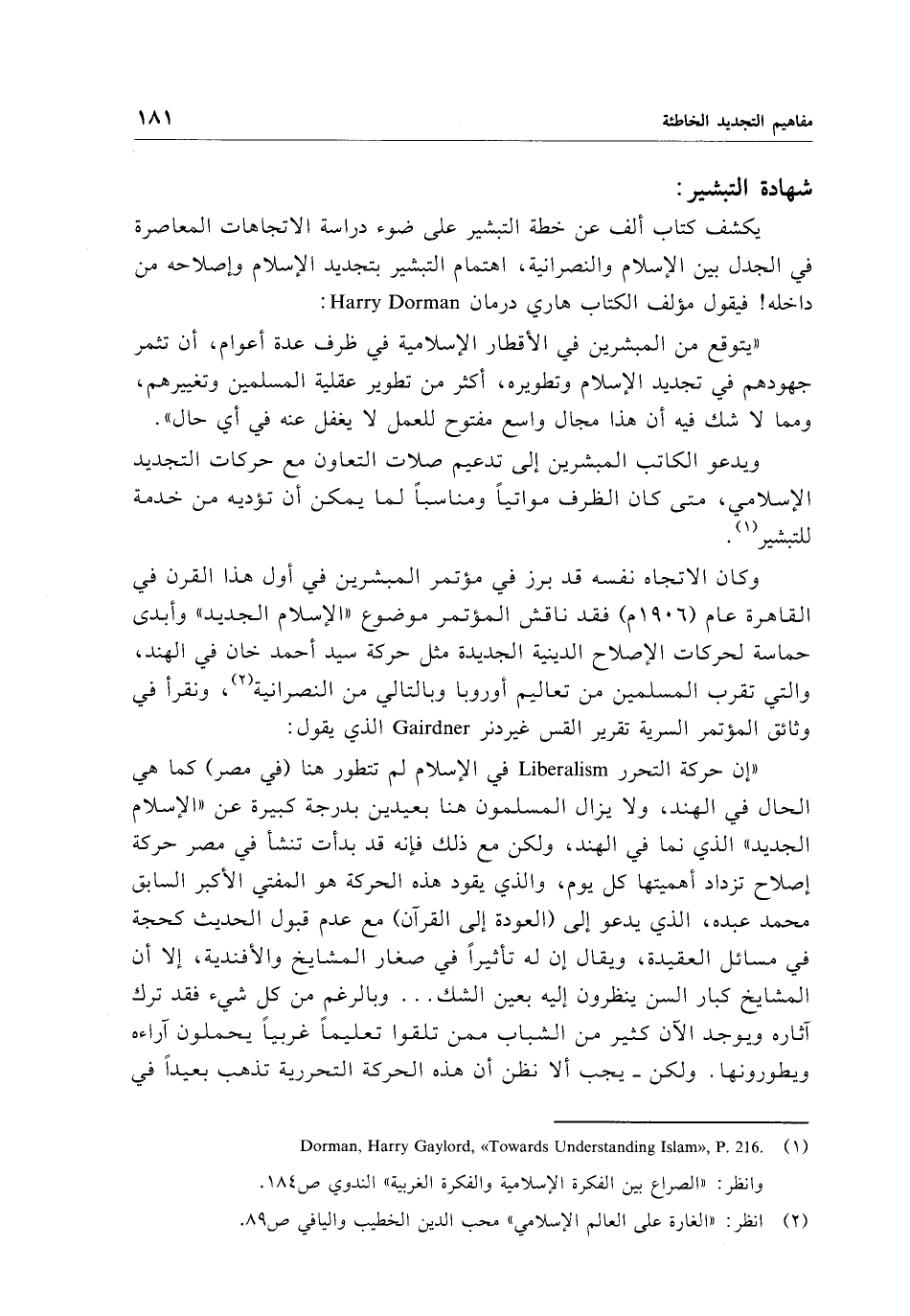 (¬1) Dorman, Harry Gaylord, "Towards Understanding Islam", P.216.