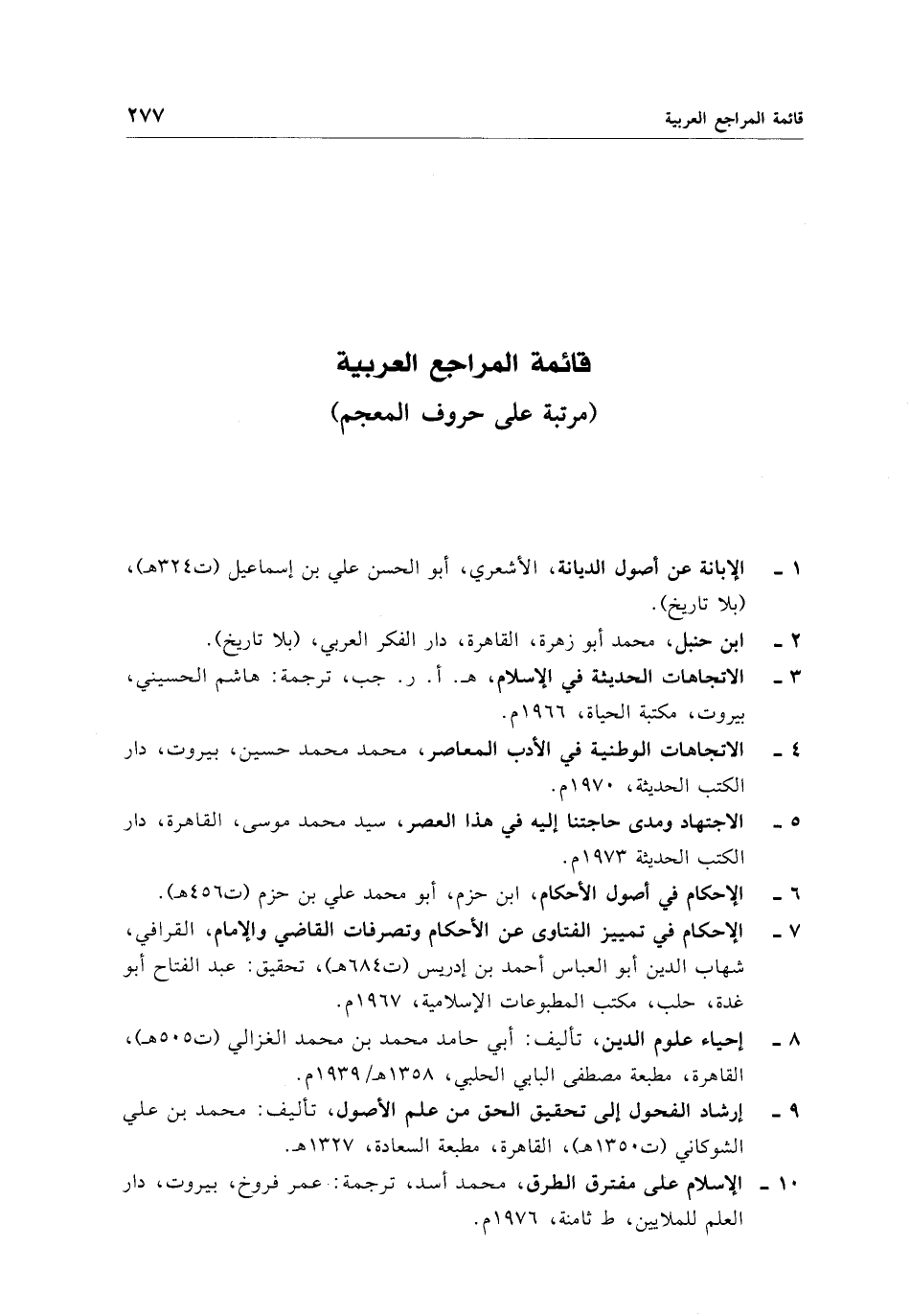 3 - الاتجاهات الحديثة في الإسلام، هـ. أ. ر. جب، ترجمة: هاشم الحسيني، بيروت، مكتبة الحياة، 1966 م.