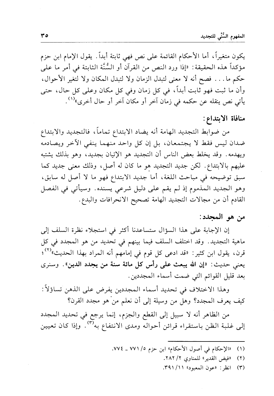 من الظاهر أنه لا سبيل إلى القطع والجزم، إنما يرجع في تحديد المجدد إلى غلبة الظن باستقراء قرائن أحواله ومدى الانتفاع به (¬3). وإذا كان تعيين