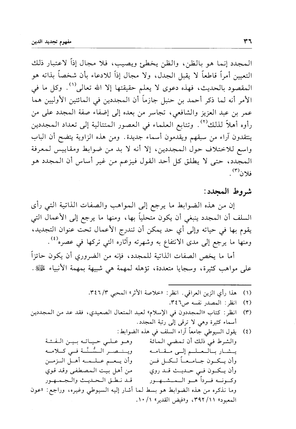 (¬3) انظر: كتاب "المجددون في الإسلام" لعبد المتعال الصعيدي، فقد عد من المجددين أسماء كثيرة وهي لا ترقى إلى رتبة المجدد.