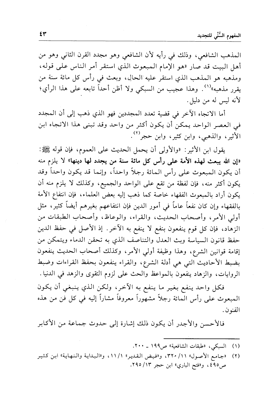 فكل واحد ينفع بغير ما ينفع به الآخر، ولكن الذي ينبغي أن يكون المبعوث على رأس المائة رجلًا مشهورا معروفًا مشارًا إليه في كل فن من هذه الفنون.