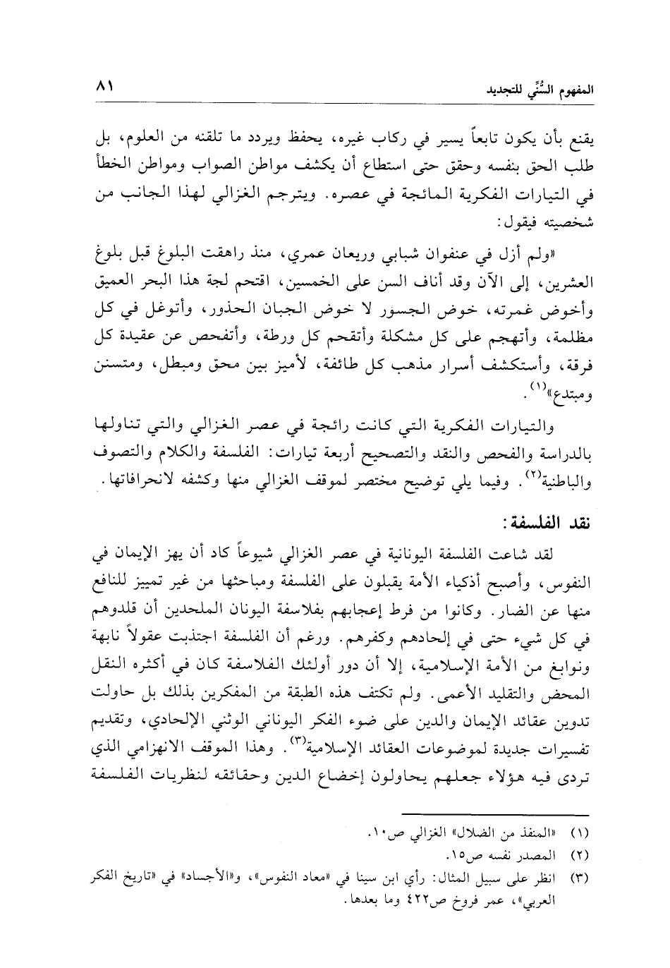 (¬1) "المنفذ من الضلال" الغزالي ص 10.