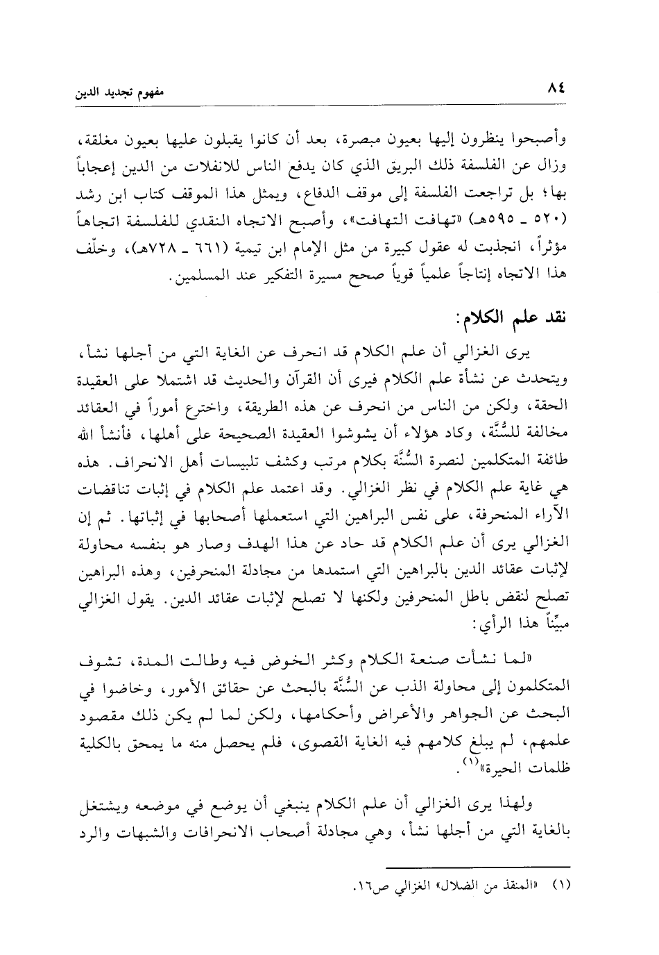 (¬1) "المنقذ من الضلال" الغزالي ص 16.