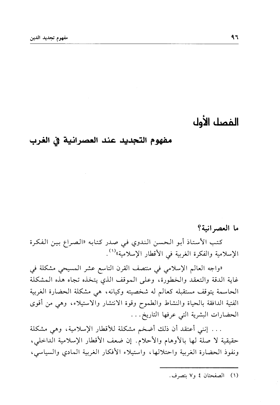 كتب الأستاذ أبو الحسن الندوي في صدر كتابه "الصراع بين الفكرة الإسلامية والفكرة الغربية في الأقطار الإسلامية" (¬1).