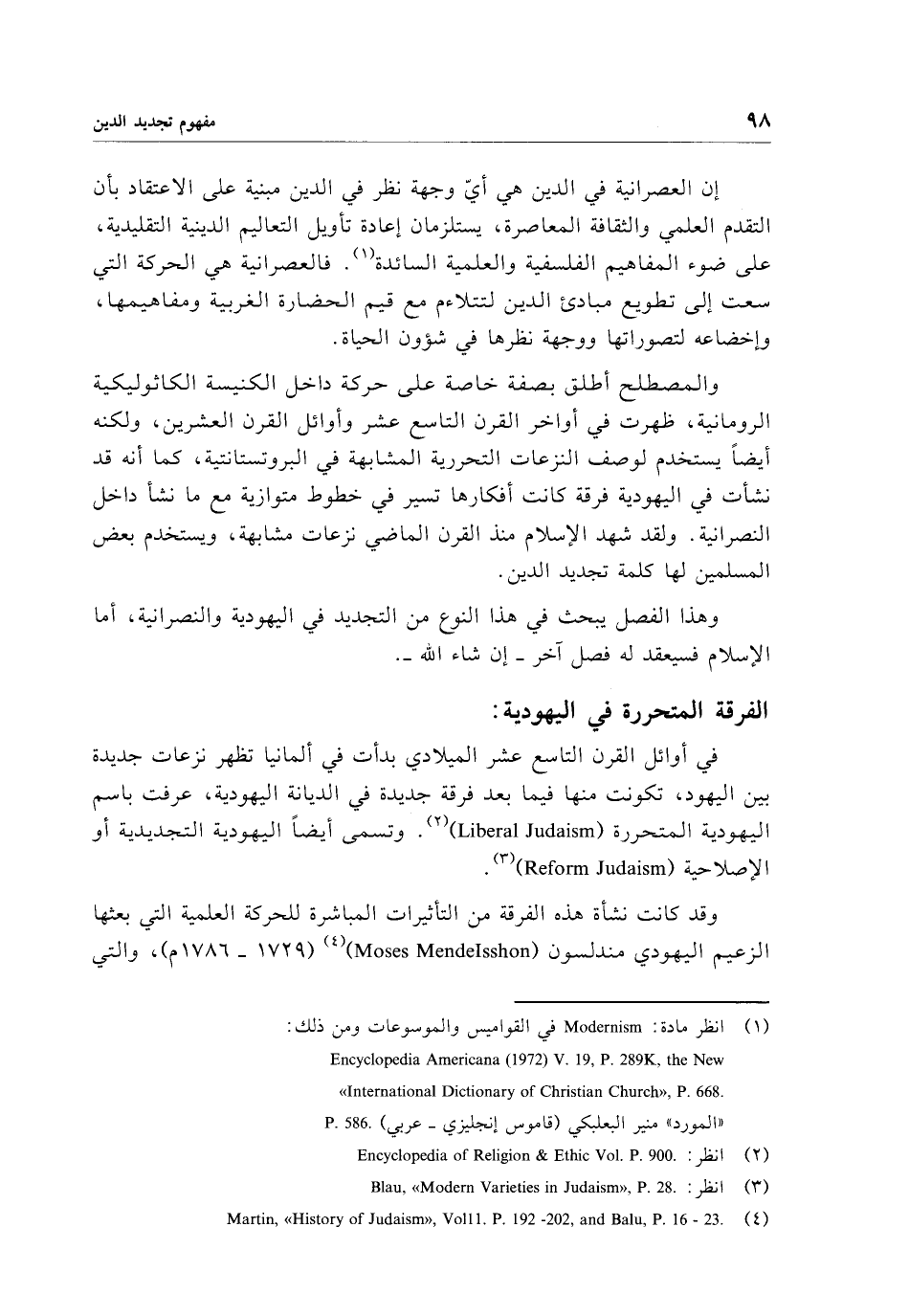 (¬1) انظر مادة: Modernism في القواميس والموسوعات ومن ذلك: Encyclopedia Americana (1972) V.19,P 289 K,the New , P.668."International Dictionary of Christian Church" " الموارد" منير البعلبكي (قاموس إنجليزي - عربي) P.586.