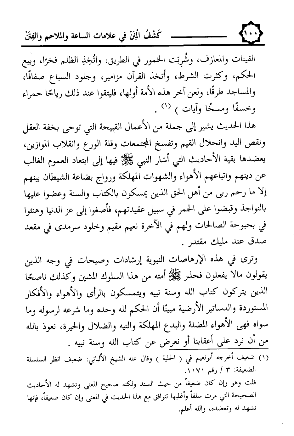 هذا الحديث يشير إلى جملة من الأعمال القبيحة التي توحى بخفة العقل ونقص اليد وانحلال القيم وتفسخ المجتمعات وقلة الورع وانقلاب الموازين، يعضدها بقية الأحاديث التي أشار النبي -صلى اللَّه عليه وسلم- فيها إلى ابتعاد العموم الغالب عن دينهم واتباعهم الأهواء والشهوات المهلكة ورواج بضاعة الشيطان بينهم إلا ما رحم ربى من أهل الحق الذين يمسكون بالكتاب والسنة وعضوا عليها بالنواجذ وقبضوا على الجمر في سبيل عقيدتهم، فأصغوا إلى عز الدنيا وهنئوا في بحبوحة الصالحات ولهم في الآخرة نعيم مقيم وخلود سرمدى في مقعد صدق عند مليك مقتدر.