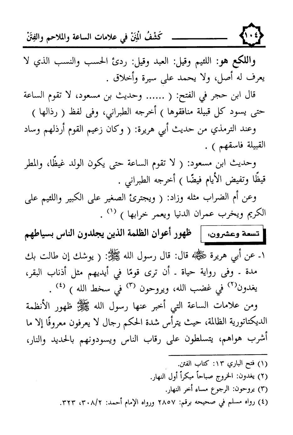 تسعة وعشرون: ظهور أعوان الظلمة الذين يجلدون الناس بسياطهم