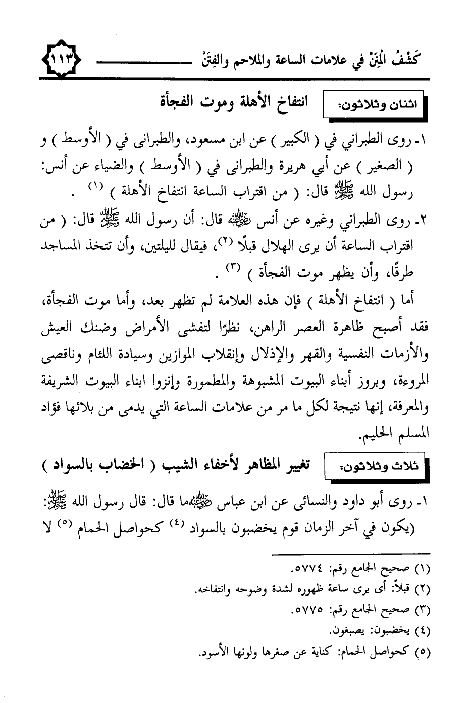 أما (انتفاخ الأهلة) فإن هذه العلامة لم تظهر بعد، وأما موت الفجأة، وقد أصبح ظاهرة العصر الراهن، نظرًا لتفشى الأمراض وضنك العيش والأزمات النفسية والقهر والإذلال وإنقلاب الموازين وسيادة اللئام وناقصى المروءة، وبروز أبناء البيوت المشبوهة والمطمورة وإنزوا ابناء البيوت الشريفة والمعرفة، إنها نتيجة لكل ما مر من علامات الساعة التي يدمى من بلائها فؤاد المسلم الحليم.