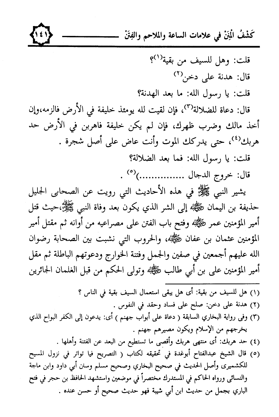 (¬5) قال الشيخ عبد الفتاح أبو غدة في تحقيقه لكتاب (التصريح بما تواتر في نزول المسيح للكشميرى): وأصل الحديث في صحيح البخاري وصحيح مسلم وعند أبي داود وابن ماجه والنسائي ورواه الحاكم في المستدرك مختصرًا في موضعين واستشهد الحافظ بن حجر في فتح الباري بجمل من حديث ابن أبي شيبة فهو حديث صحيح أو حسن عنده.