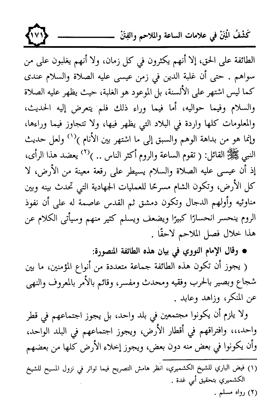 (¬1) فيض الباري للشيخ الكشميري، انظر هامش التصريح فيما تواتر في نزول المسيح للشيخ الكشميري بتحقيق أبي غدة.