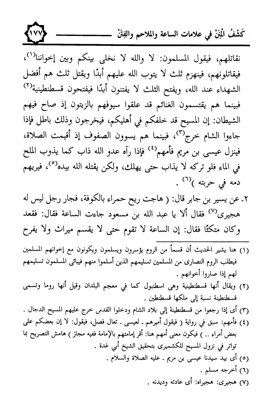 (¬3) أي إذا رجعوا من قسطنطنة إلى بلاد الشام ودخلوا القدس خرج عليهم المسيح الدجال.