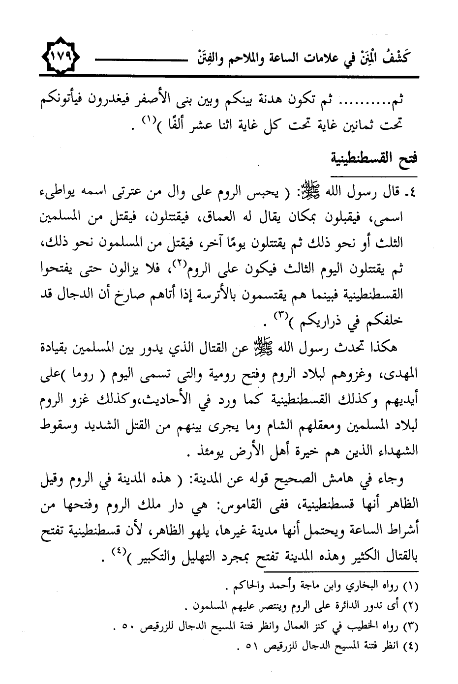 (¬4) انظر فتنة المسيح الدجال للزرقيص 51.
