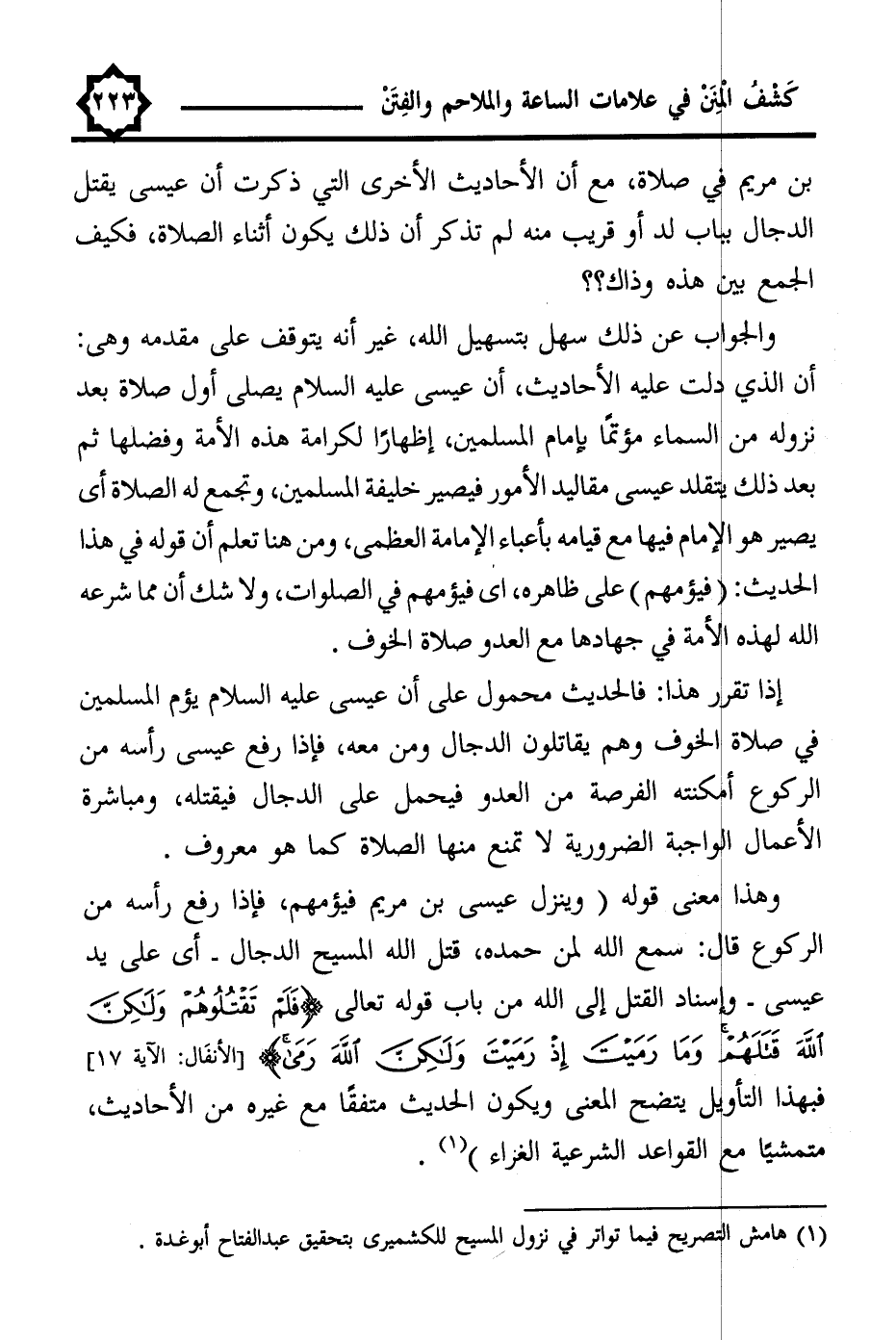 (¬1) هامش التصريح فيما تواتر في نزول المسيح للكشميرى بتحقيق عبد الفتاح أبو غدة.