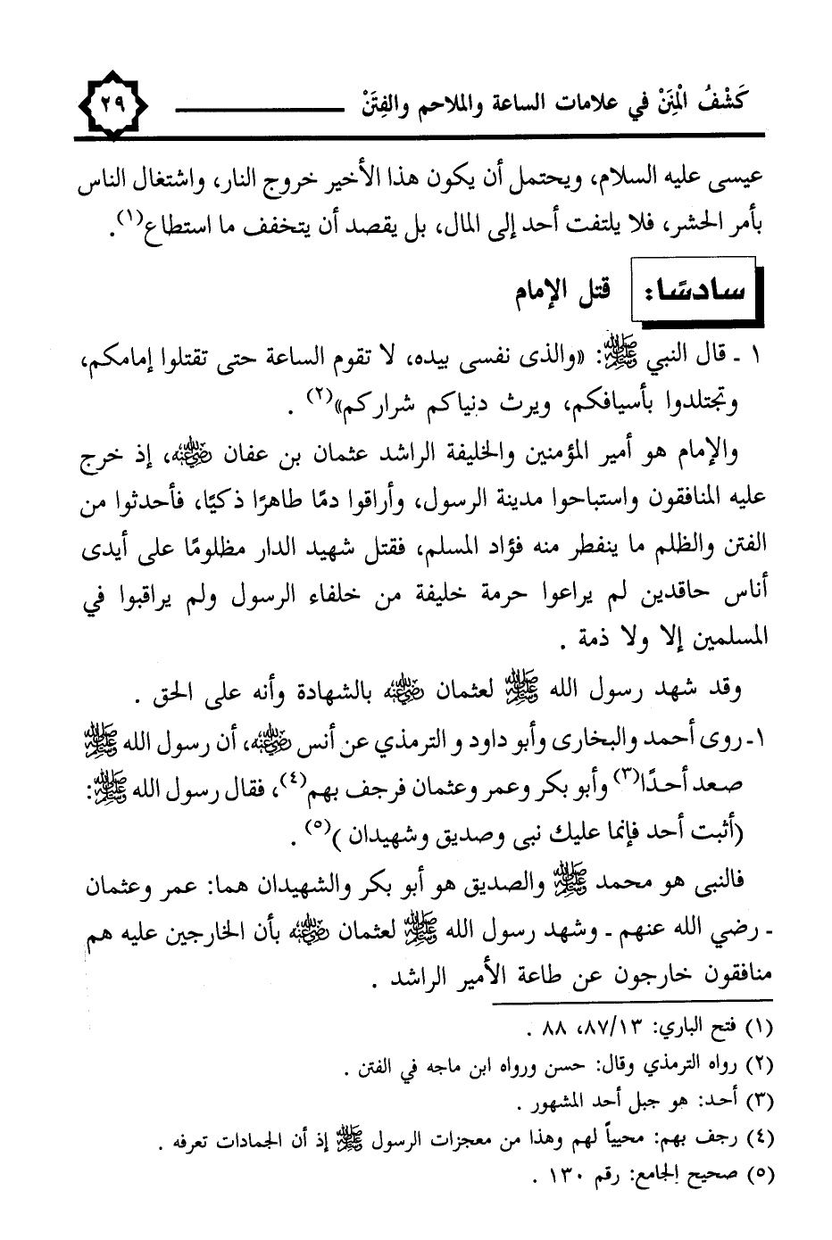1 - قال النبي -صلى اللَّه عليه وسلم-: "والذي نفسى بيده، لا تقوم الساعة حتى تقتلوا إمامكم، وتجتلدوا بأسيافكم، ويرث دنياكم شراركم" (¬2).
