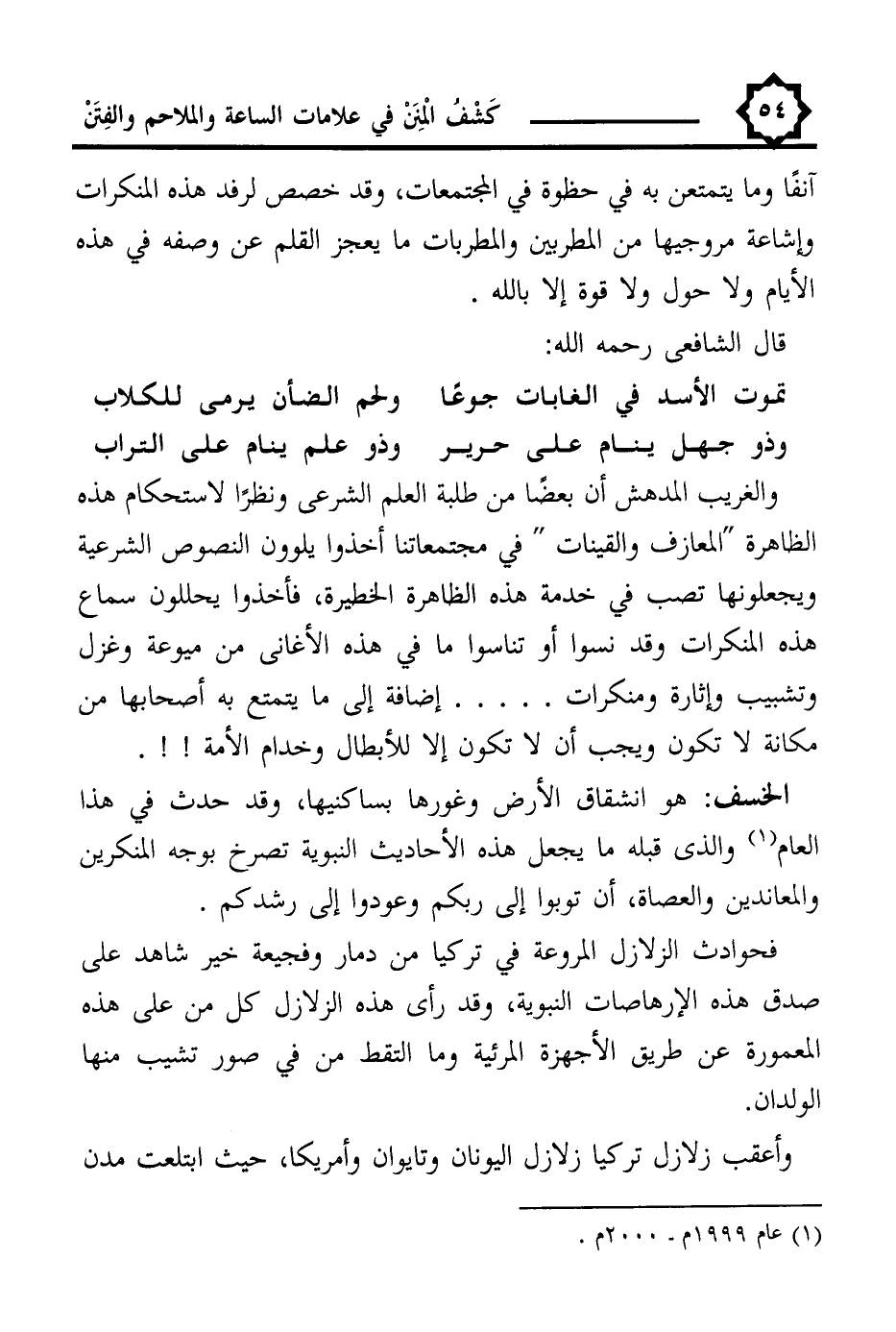 الخسف: هو انشقاق الأرض وغورها بساكنيها، وقد حدث في هذا العام (¬1) والذي قبله ما يجعل هذه الأحاديث النبوية تصرخ بوجه المنكرين والمعاندين والعصاة، أن توبوا إلى ربكم وعودوا إلى رشدكم.