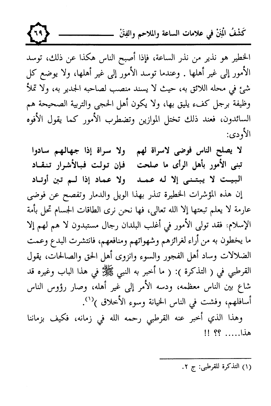 وهذا الذي أخبر عنه القرطبي رحمه اللَّه في زمانه، فكيف بزماننا هذا. . .؟؟!!