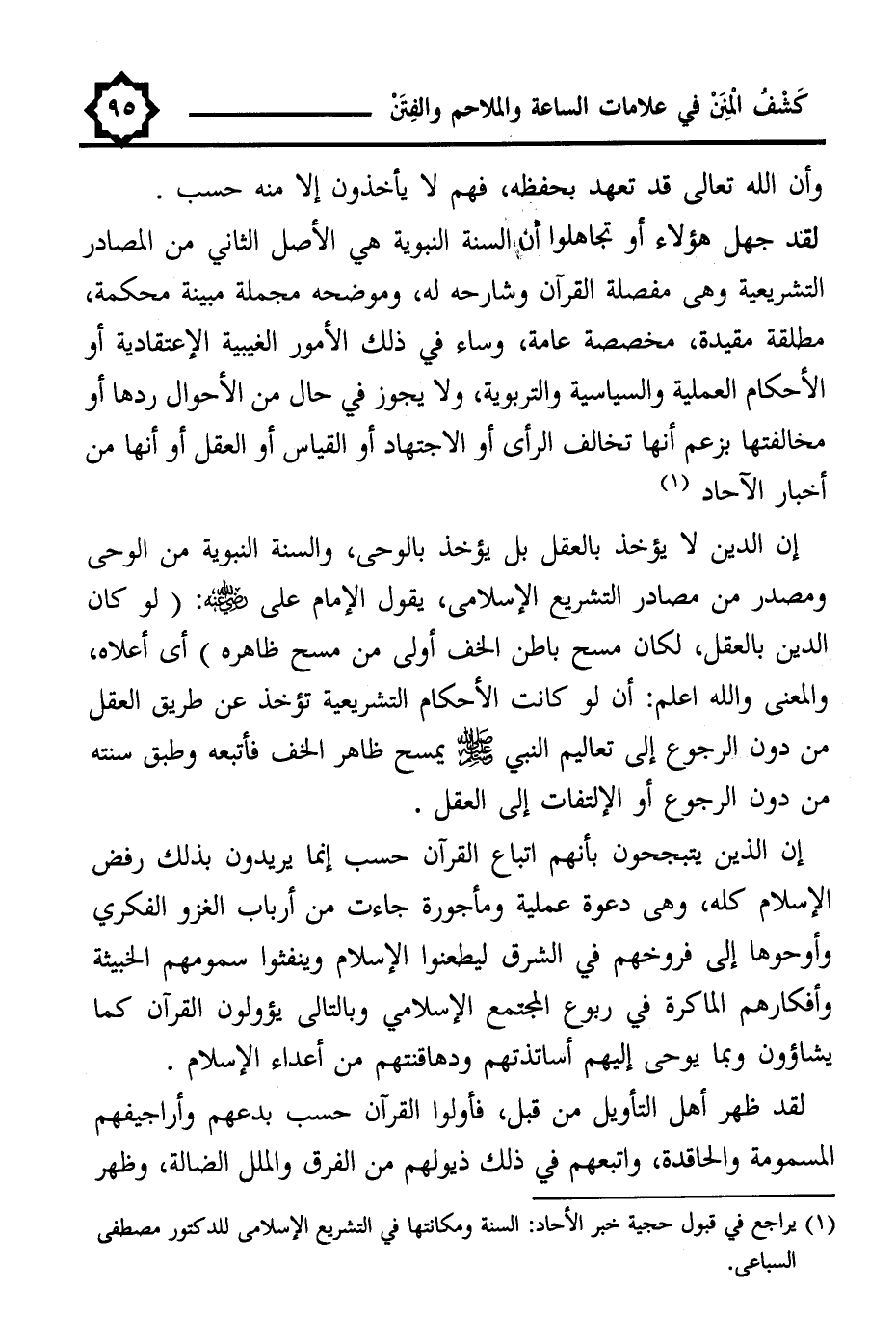 (¬1) يراجع في قبول حجية خبر الأحاد: السنة ومكانتها في التشريع الإسلامي للدكتور مصطفى السباعى.