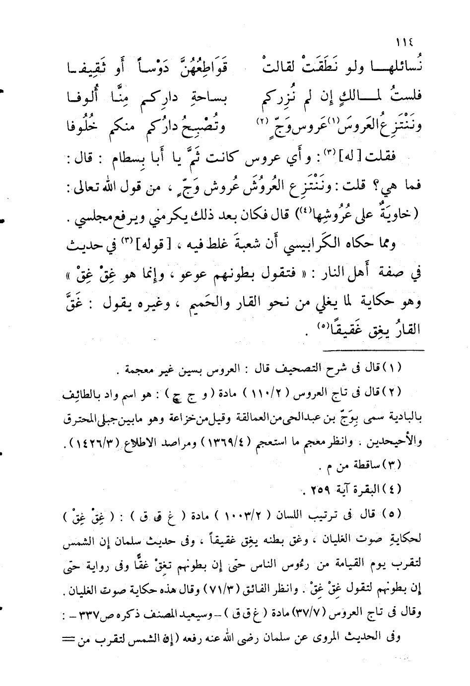فَقُلْتُ [لَهُ] وَأَيُّ عَرُوسٍ كَانَتْ ثَمَّ يَا أَبَا بِسْطَامٍ قَالَ فَمَا هِيَ قُلْتُ وَنَنْتَزِعُ الْعُرُوشَ عُروشَ وَجٍّ مِنْ قَوْلِ اللَّهِ تَعَالَى {خاوية على عروشها} 4 قَالَ فَكَانَ بَعْدَ ذَلِكَ يُكْرِمُنِي وَيَرْفَعُ مَجْلِسِي