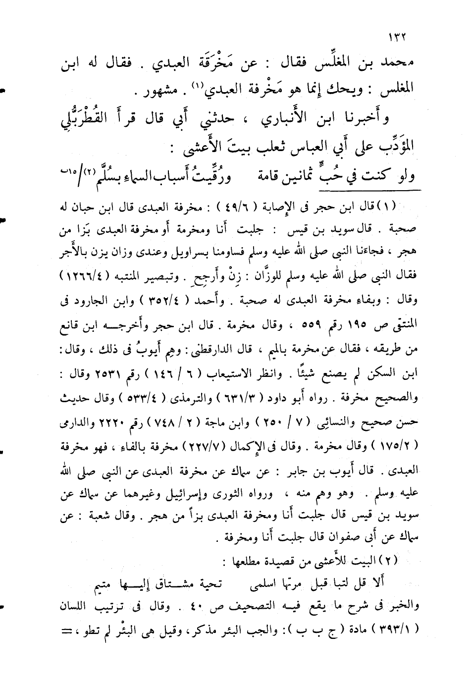 مُحَمَّد بْن المغلِّس فَقَالَ عَن مخرفة الْعَبْدي فَقَالَ لَهُ ابْن الْمُغلس وَيحك إِنما هُوَ مَخْرفة الْعَبْدي مَشْهُور