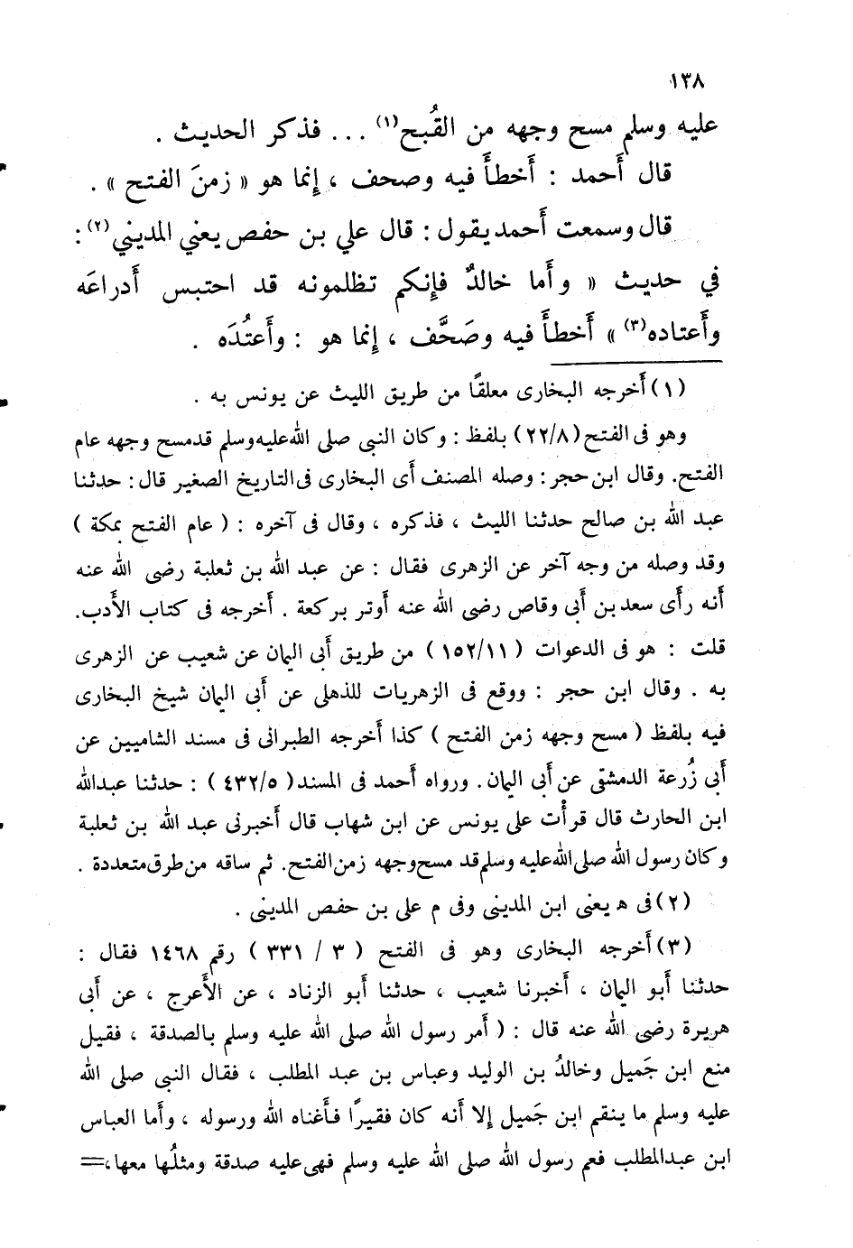 قالَ وَسمعت أَحْمَد يَقُول قالَ عَليّ بْن حَفْص يَعْنِي الْمَدِينِيّ فِي حَدِيث وَأما خالدٌ فَإِنَّكُم تظلمونه قد احْتبسَ أَدراعَه وأَعتاده أَخطأَ فِيهِ وصَحَّف إِنما هُوَ وأَعتُده