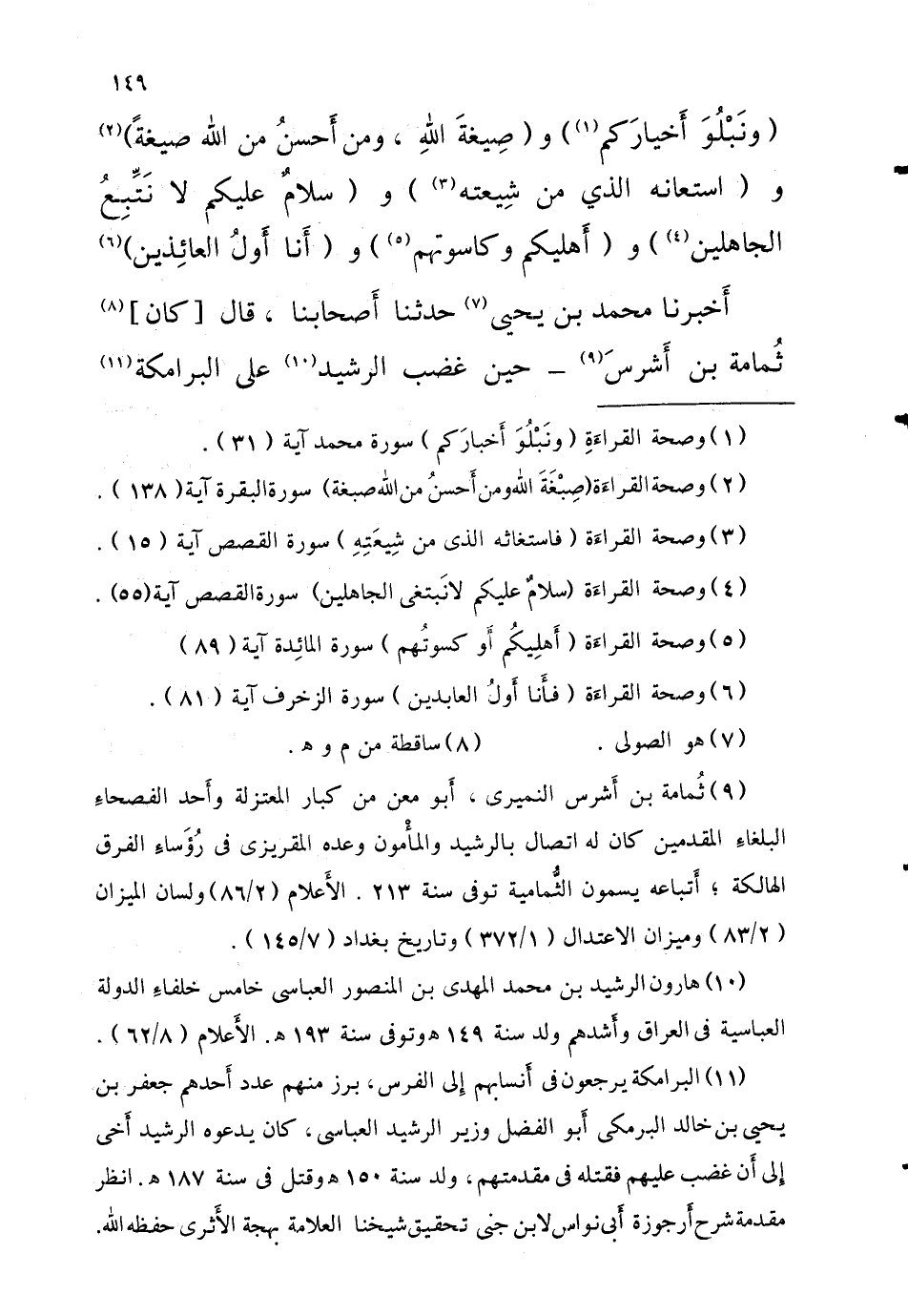 أخبرنَا مُحَمَّد بْن يحيى حَدَّثَنَا أَصْحَابنَا قالَ [كَانَ] ثُمامة بْن أَشْرَس حِين غضب الرشيد على البرامكة