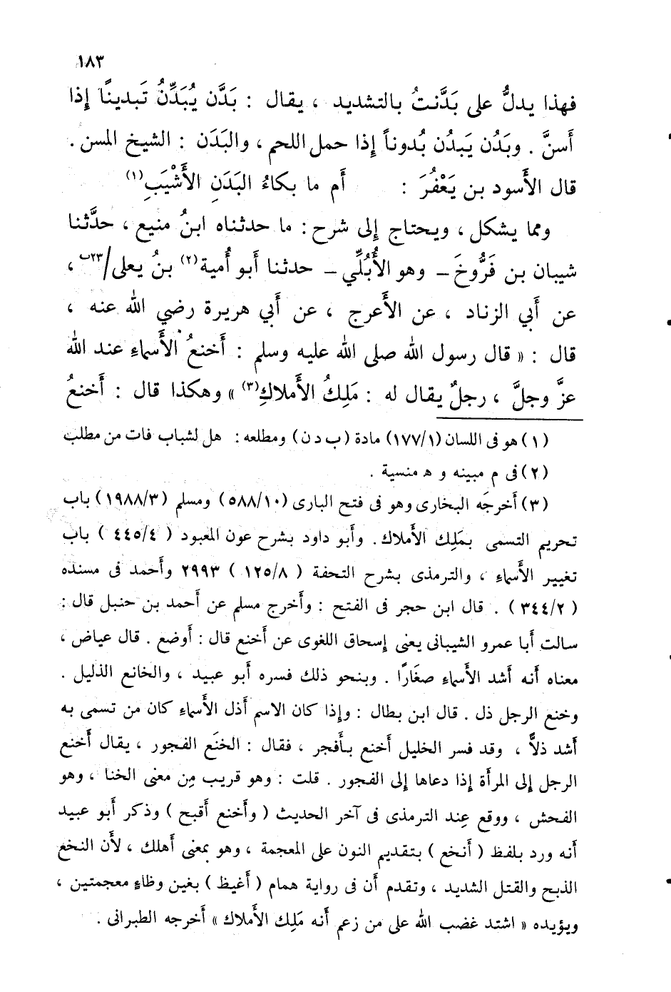 وَمَا يشكل وَيحْتَاج إِلَى شرح مَا حَدَّثَنَاهُ ابْنُ مَنِيعِ حَدَّثَنَا شَيْبَانُ بْنُ فَرُّوخٍ وَهُوَ الأُبُلِّيُّ حَدَّثَنَا أَبُو أُميَّة بن يعلى 23 ب عَنْ أَبِي الزِّنَادِ عَنِ الأَعْرَجِ عَنْ أَبِي هُرَيْرَةَ رَضِيَ اللَّهُ عَنْهُ قَالَ قَالَ رَسُولُ اللَّهِ صَلَّى اللَّهُ عَلَيْهِ وَسَلَّمَ أَخْنَعُ الأَسْمَاءِ عِنْدَ اللَّهِ عزَّ وجلَّ رَجُلٌ يُقَالُ لَهُ مَلِكُ الأَمْلاكِ وَهَكَذَا قَالَ أَخْنَعُ