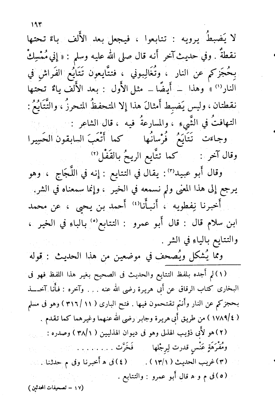 أخبرنَا نفْطَويه أَنبأَنا أَحْمَد بْن يحيى عَن مُحَمَّد ابْن سَلام قالَ قالَ أَبُو عَمْرو التَّتَابُع بالباءِ فِي الْخَيْر والتتايع بالياءِ فِي الشَّرّ