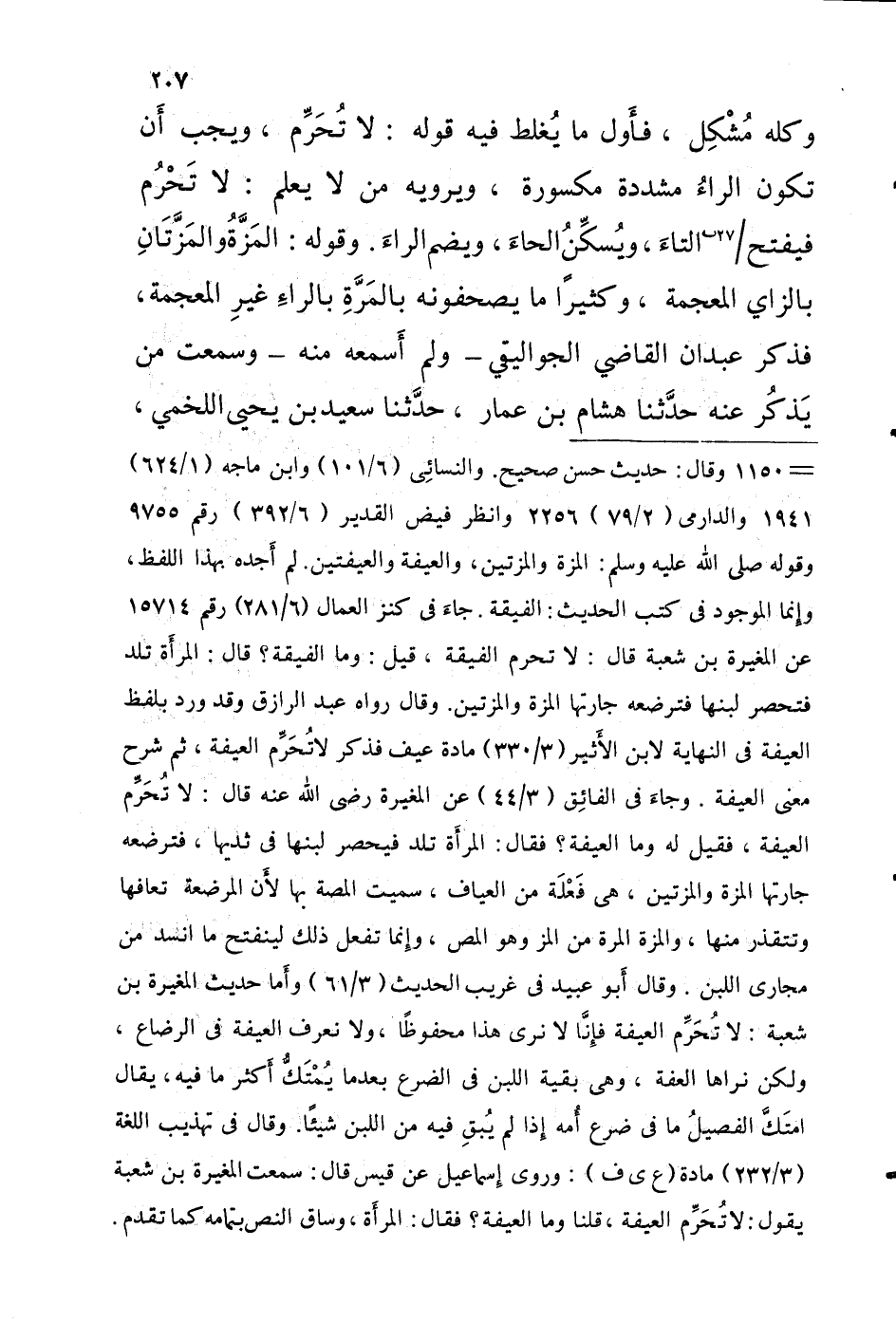 وَكُلُّهُ مُشْكِلٌ فأَول مَا يُغلط فِيهِ قَوْله لَا تُحَرِّم وَيجب أَن تكون الراءُ مُشَدّدَة مَكْسُورَة وَيَرْوِيه من لَا يعلم لَا تحرم فَيفتح 27 ب التاءَ ويُسكِّنُ الحاءَ وَيضم الراءَ وَقَوله الْمَزَّةُ والْمَزَّتانِ بالزاي الْمُعْجَمَة وَكَثِيرًا مَا يصحفونه بالْمَرَّةِ بالراءِ غير الْمُعْجَمَة فَذكر عَبْدَانِ القَاضِي الجواليقي وَلم أسمعهُ مِنْهُ وَسمعت من يَذكُر عَنْهُ حَدَّثَنَا هِشَامُ بْنُ عَمَّارٍ حَدَّثَنَا سَعِيدُ بْنُ يَحْيَى اللَّخْمِيُّ