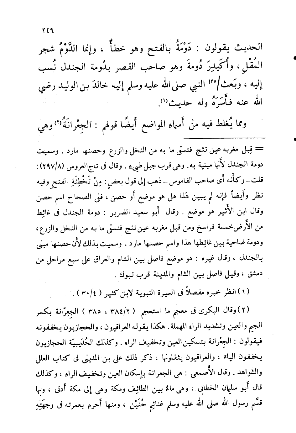 وَمِمَّا يُغلط فِيهِ من أَسماءِ الْمَوَاضِع أَيضًا قَوْلهم الجِعْرانَةُ وَهِي