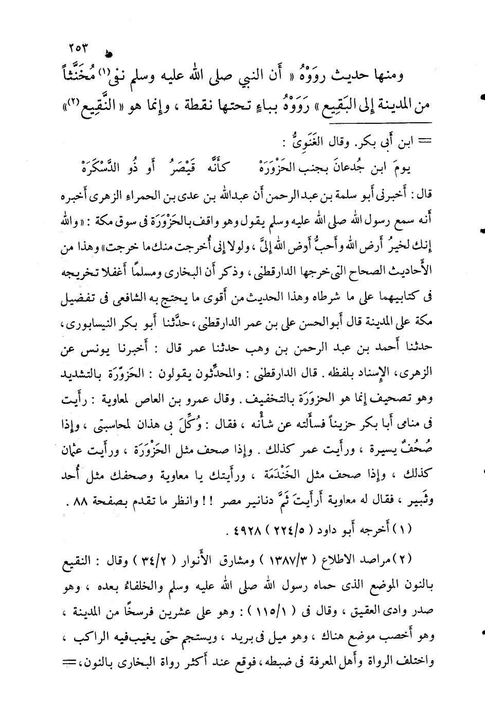 وَمِنْهَا حَدِيث روَوْهُ أَن النَّبِيّ صلى الله عَلَيْهِ وَسلم نَفَى مُخَنَّثًا مِنَ الْمَدِينَةِ إِلَى الْبَقِيعِ رَوَوْهُ بباء تحتهَا نقطة وَإِنَّمَا هُوَ النقيع