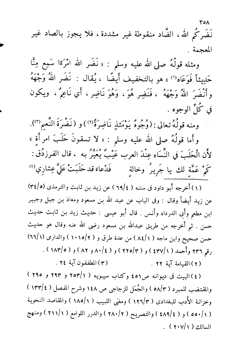 نضركم اللَّه الضَّاد منقوطة غير مُشَدّدَة فَلَا يجوز بالصَّاد غير الْمُعْجَمَة