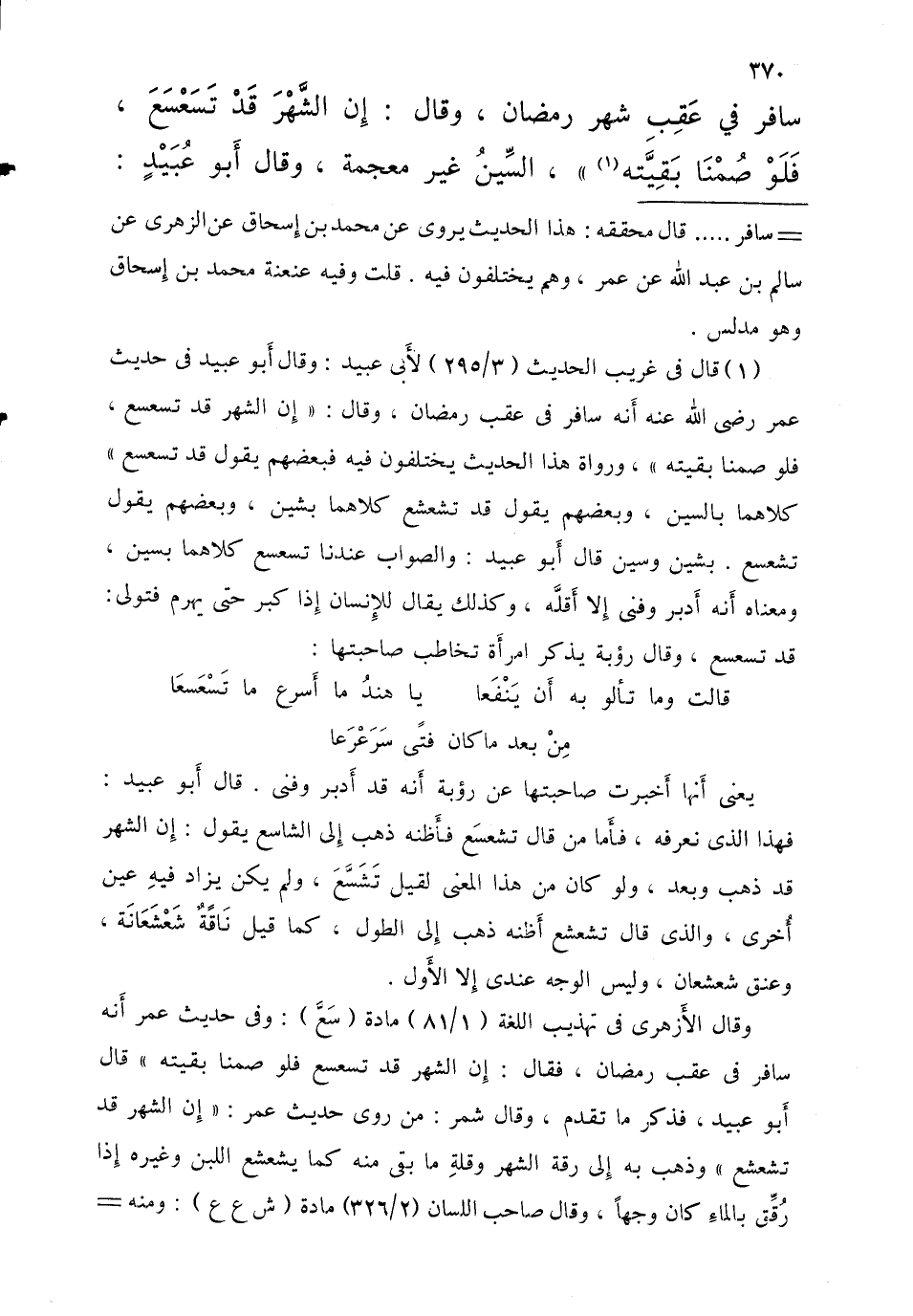 سَافر فِي عَقِبِ شهر رَمَضَان وَقَالَ إِن الشَّهْر قد تسعسع فَلَو صُمْنَا بَقِيَّته السينُ غير مُعْجمَة وَقَالَ أَبُو عبيدٍ