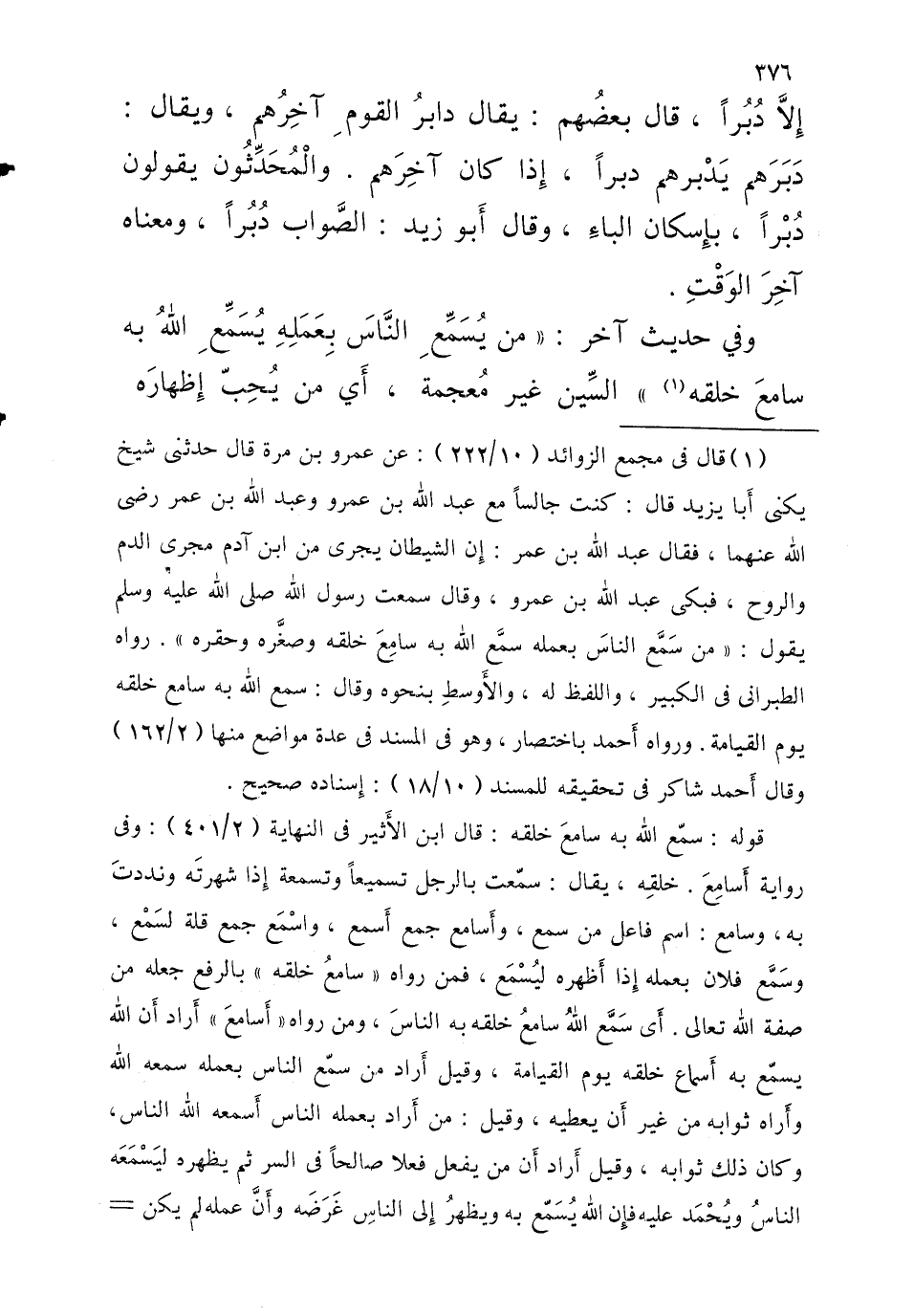 وَفِي حَدِيث آخر من يُسَمِّعِ الناسَ بِعَمَلِهِ يُسَمِّعِ اللهُ بِهِ سامعَ خلقه السِّين غير مُعجمة أَي من يُحِبّ إِظهارَه