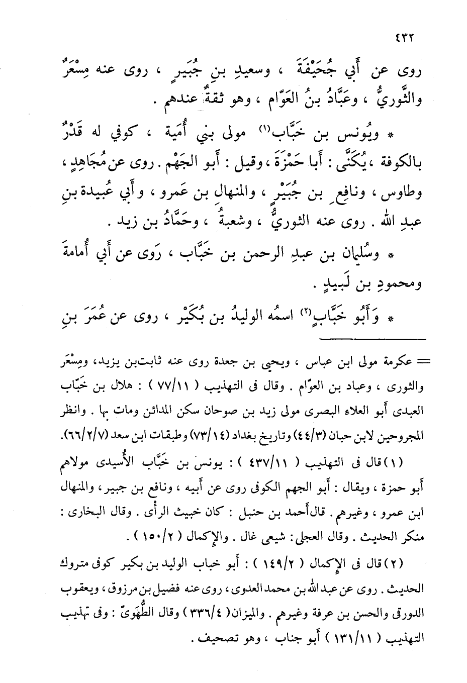 ويُونس بْن خَبَّاب مَوْلَى بني أُميَّة كُوفِي لَهُ قدرٌ بِالْكُوفَةِ يكنى أَبَا حَمْزَة وَقيل أَبُو الجَهْم روى عَن مُجَاهِدٍ وَطَاوُس وَنَافِع بْن جُبَيْرٍ والمنهال بْن عَمْرو وَأبي عُبَيْدة بْن عَبْد اللَّه روى عَنهُ الثَّوْريّ وشبعة وحمادُ بْن زَيْدُ