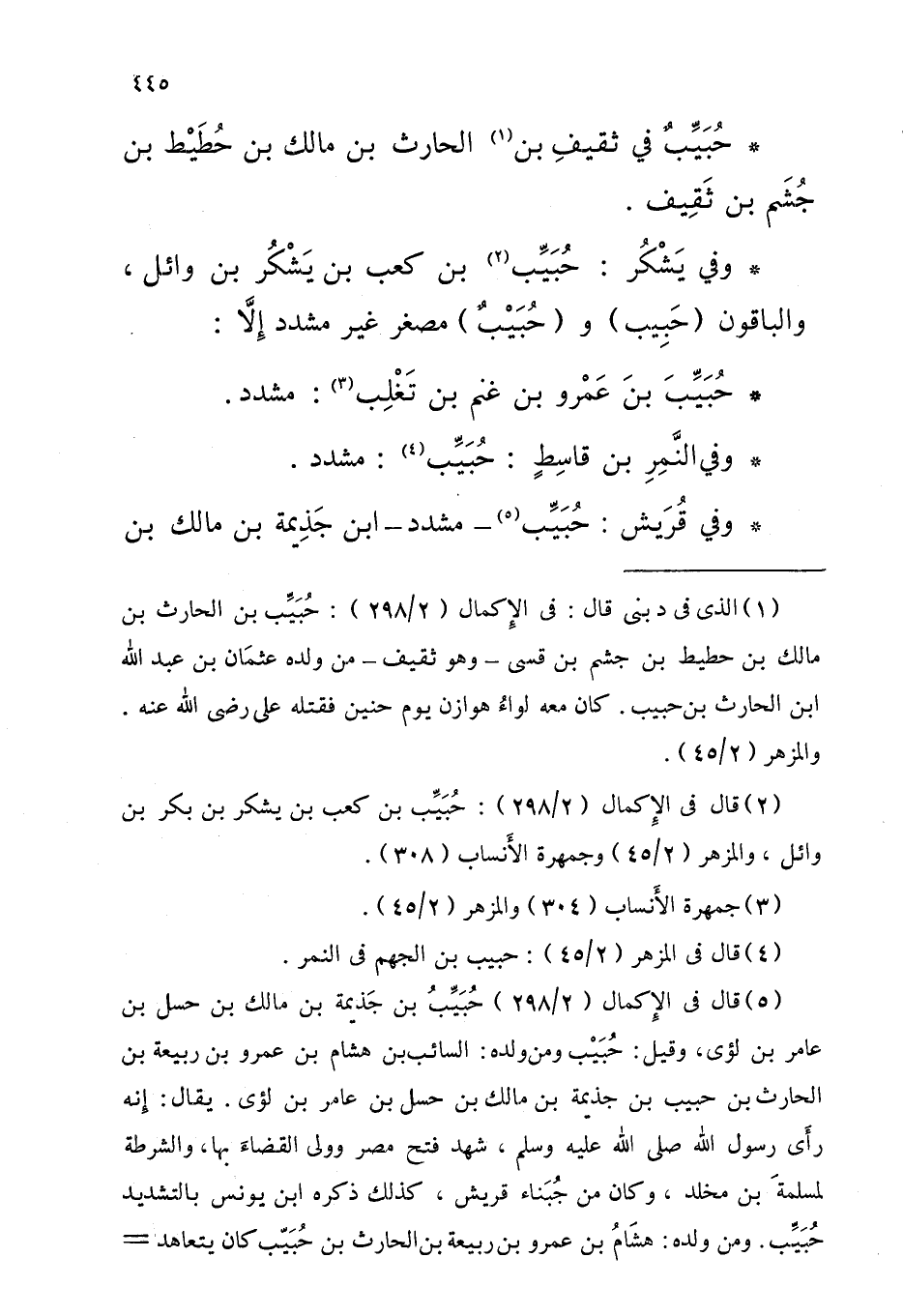 وَفِي النمر بْن قاسِطٍ حُبَيِّبٌ مشدد