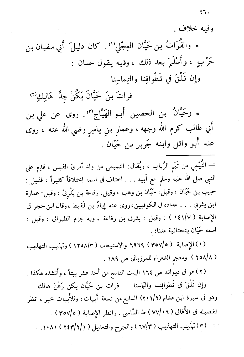 وحَيَّانُ بْن الحُصَيْن أَبُو الهَيَّاج روى عَن عَليّ بْن أَبِي طَالِب كرم اللَّه وَجهه وعمارِ بْن ياسرٍ رَضِيَ اللَّه عَنْهُ روى عَنْهُ أَبو وَائِل وَابْنه جَرير بْن حَيّان
