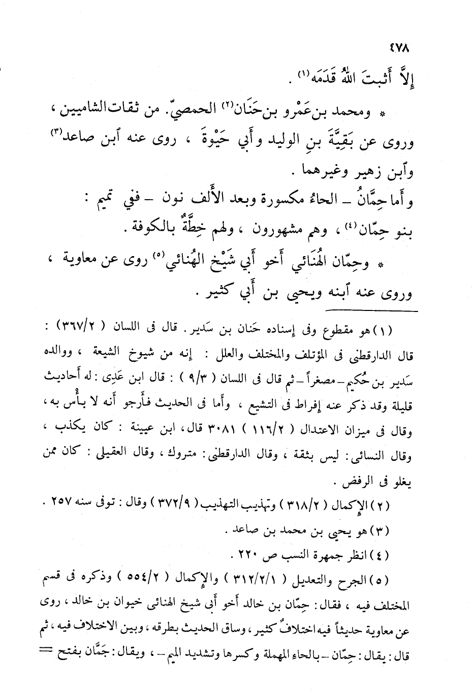 وَمُحَمّد بْن عَمْرو بْن حَنَان الحمصيّ من ثِقَات الشاميين وروى عَن بَقِيَّةَ بْن الْوَلِيد وأَبي حَيْوةَ روى عَنْهُ ابْن صاعد وَابْن زُهَيْر وَغَيرهمَا وأَما حِمَّانُ الحاءُ مَكْسُورَة وَبعد الأَلف نون فَفِي تَمِيم بَنو حمان وهم مَشْهُورُونَ وَلَهُم خِطَّةٌ بِالْكُوفَةِ