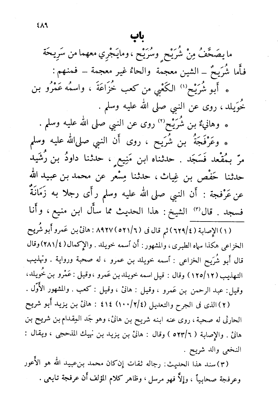 بَابُ مَا يصَحَّفُ مِنْ شُرَيْحٍ وسريح وَمَا يَجْرِي مَعَهُمَا من سَرِيحَة فأَما شُرَيحٌ الشين مُعْجمَة والحاءُ غير مُعْجمَة فَمنهمْ