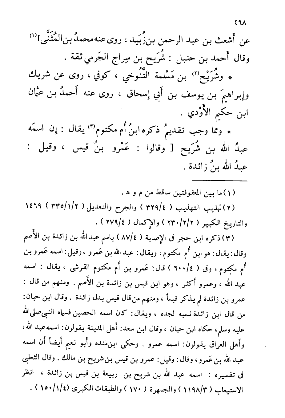 وَمِمَّا وَجب تَقْدِيم ذكره ابنُ أم مَكْتُوم يُقَالُ إِن اسْمه عَبْد اللَّه بْن شُرَيْحُ [وَقَالُوا عَمْرو بْن قَيْس وَقيل عَبْد اللَّه بْن زَائِدَة