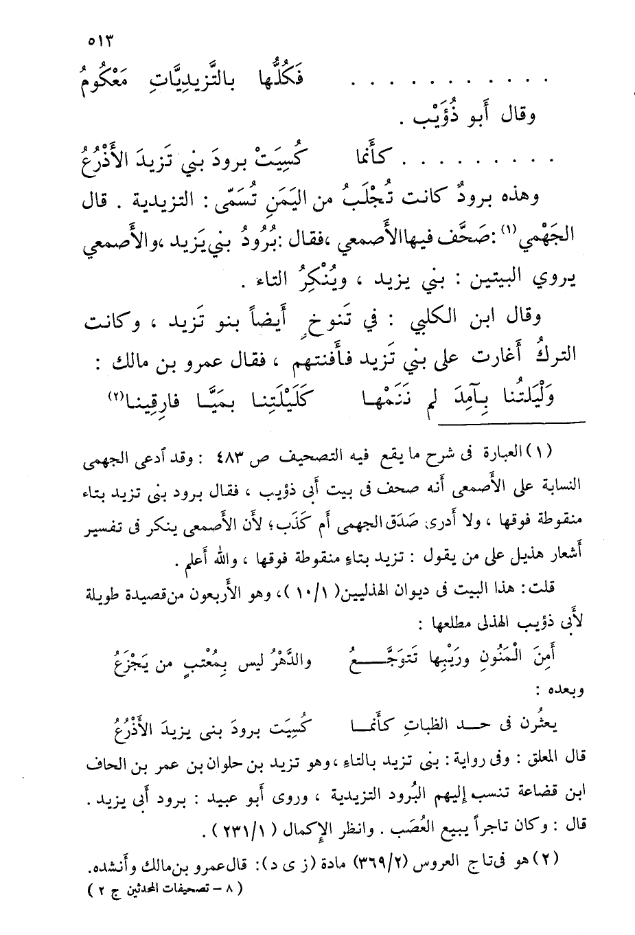 وَهَذِه برودٌ كَانَتْ تُجْلَبُ من اليَمَنِ تُسَمّى التزيدية قالَ الجَهْمي صَحَّف فِيهَا الأَصمعي فَقَالَ بُرُودُ بني يَزيد والأَصمعي يروي الْبَيْتَيْنِ بني يزِيد ويُنْكِر التَّاء