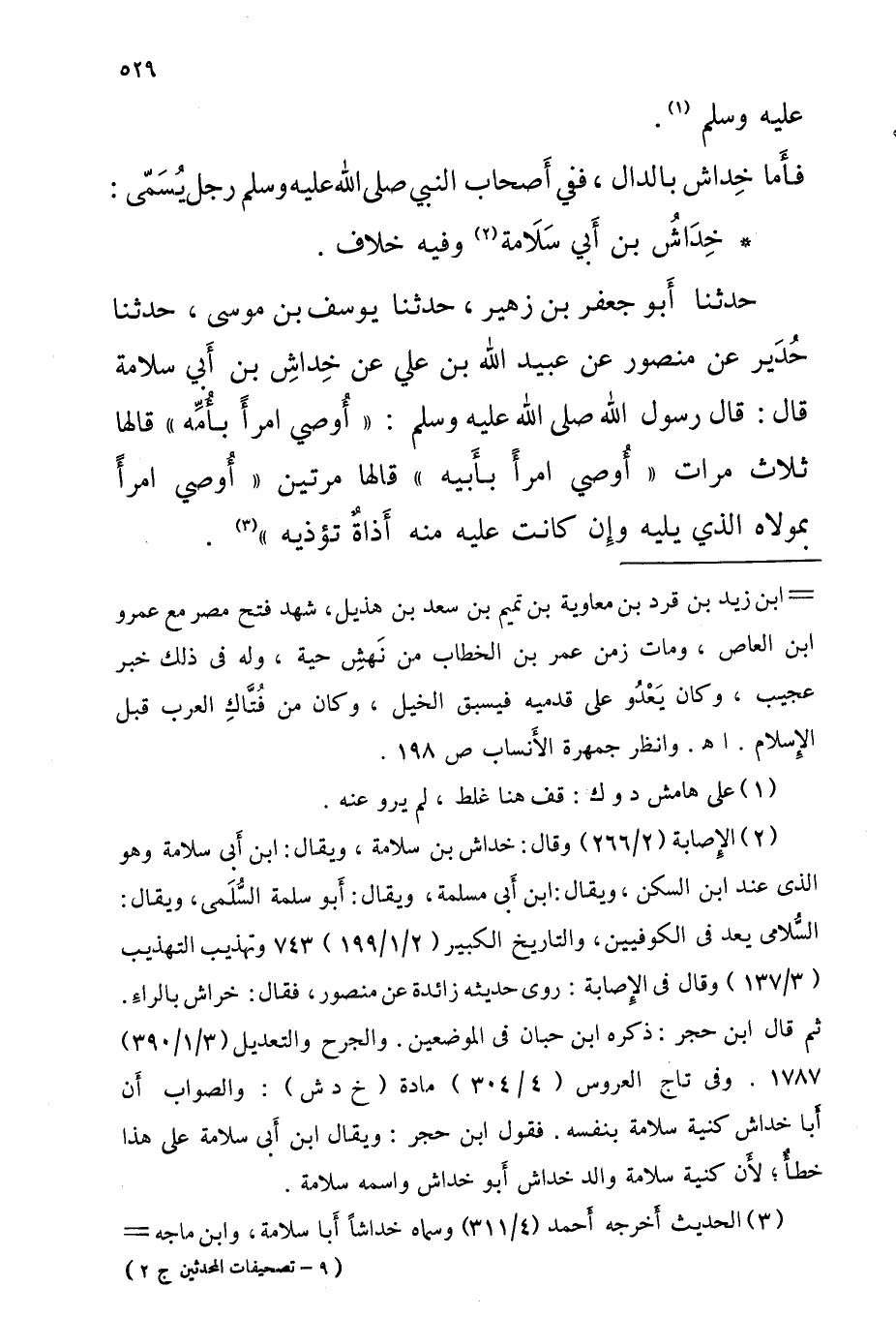 عَلَيْهِ وَسلم فأَما خِداش بِالدَّال فَفِي أَصحاب النَّبِيّ صلى الله عَلَيْهِ وَسلم رَجُل يُسَمّى