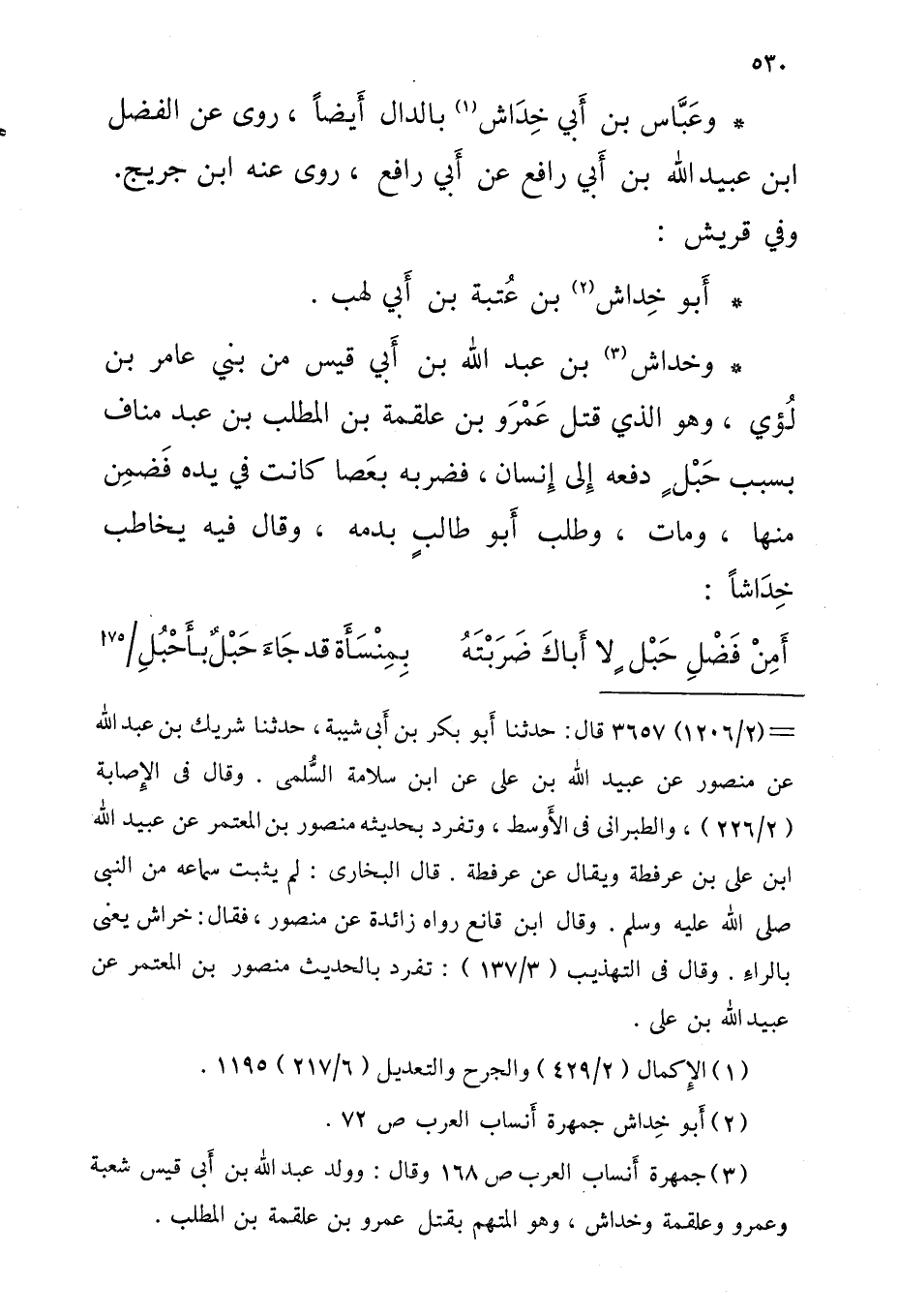 وعَبَّاس بْن أَبي خِدّاش بِالدَّال أَيْضا روى عَن الْفضل ابْن عُبَيْد اللَّه بْن أَبي رَافع عَن أَبِي رَافع روى عَنْهُ ابْن جريج وَفِي قُرَيْش