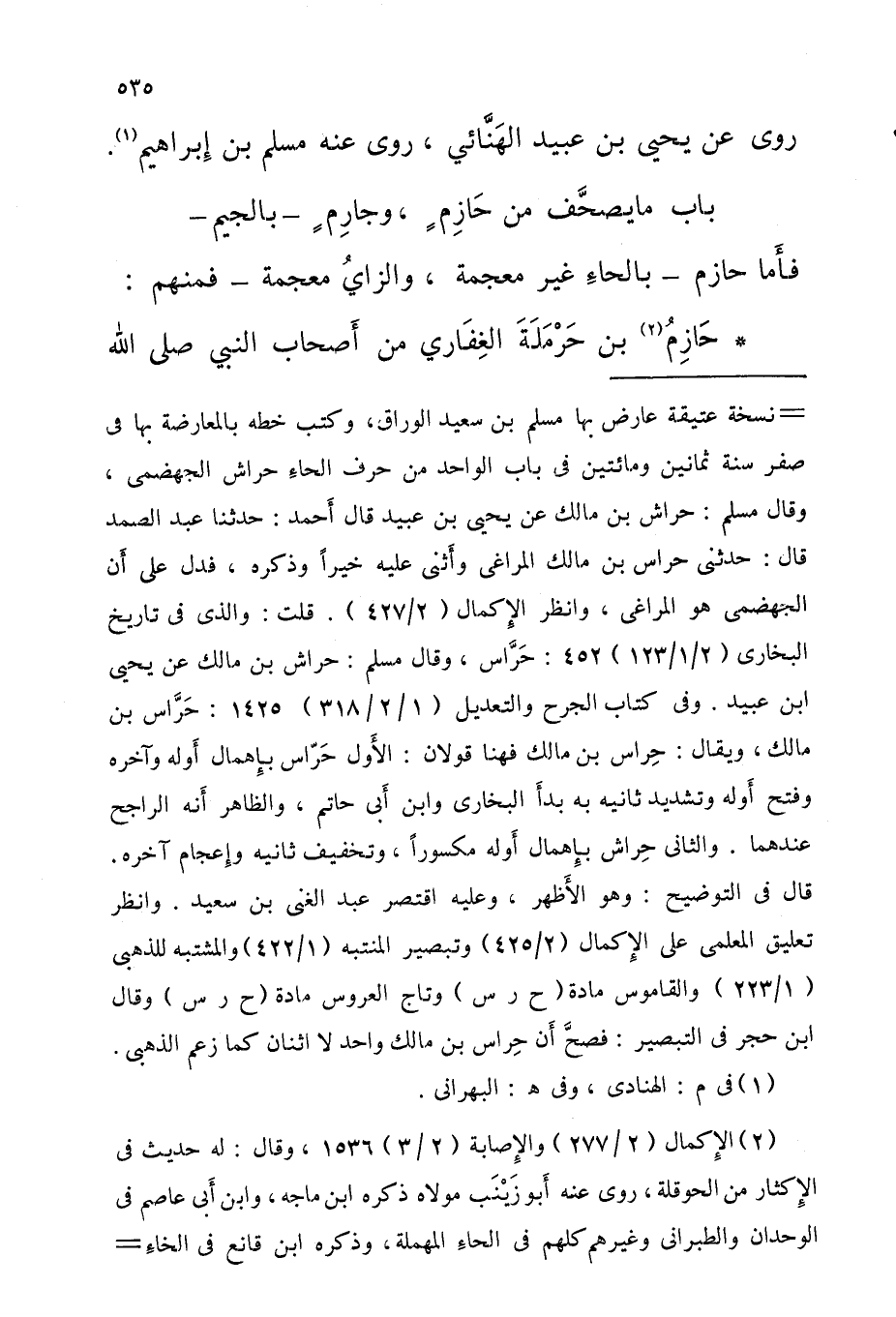 بَابُ مَا يُصَحَّفُ من حَازِمٍ وجارِمٍ بِالْجِيم فأَما حَازِم بالحاءِ غير مُعْجمَة والزايُ مُعْجمَة فَمنهمْ