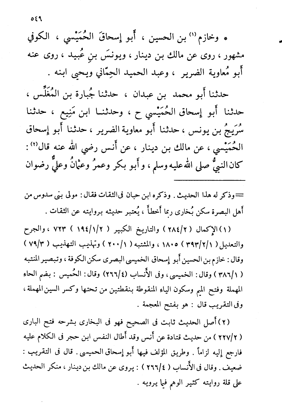 وخازم بْن الْحُسَيْن أَبُو إِسْحَاق الحميسي الْكُوفِي مَشْهُور روى عَن مَالك بْن دِينَار وَيُونُس بْن عُبَيْد روى عَنْهُ أَبُو مُعاوية الضَّرِير وَعبد الحميد الْحمانِي وَيحيى ابْنه