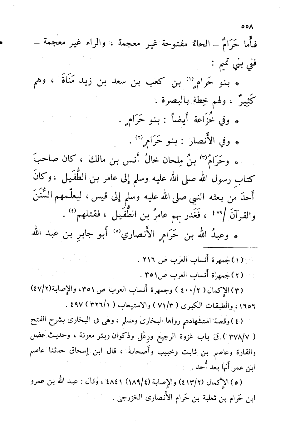 558 - فأَما حَرَامٌ الحاءُ مَفْتُوحَة غير مُعْجمَة وَالرَّاء غير مُعْجمَة فَفِي بني تَمِيم
